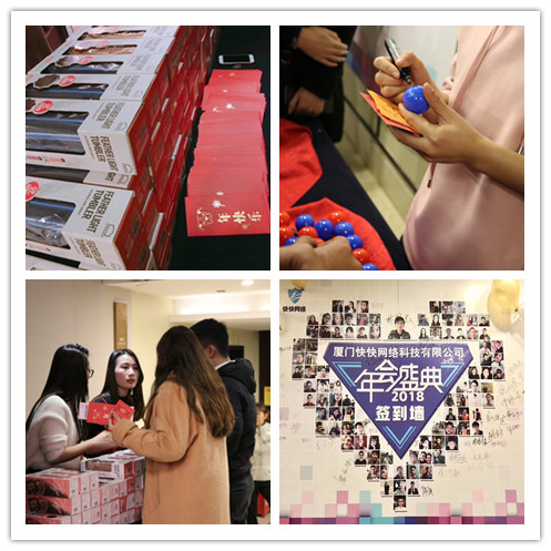 2月3號,快快網(wǎng)絡(luò)“超越夢想,共創(chuàng)輝煌”2018主題年會盛典在廈門君隆大酒店舉行。 暖心禮品 年會現(xiàn)場簽到領(lǐng)取抽獎號碼,送大紅包和保溫杯,小伙伴們天冷了記得多喝熱水 文藝匯演 快快網(wǎng)絡(luò)小伙伴們?yōu)槟陼?zhǔn)備了非常精彩的文藝表演。這里有呆萌的舞蹈秀、精 彩的音樂劇、甜蜜的情歌對唱、異域風(fēng)情的印度舞,展現(xiàn)自我風(fēng)采,留下最美瞬間! 頒獎典禮 公司為2017年表現(xiàn)出色的同事頒發(fā)了獎杯和大紅包,越努力越幸運(yùn),感謝小伙 伴們?yōu)楣咀龀龅呢暙I(xiàn)。 幸運(yùn)抽獎 iphoneX、ipad、Watch、家庭影院、掃地機(jī)器人、平衡車、更有萬元現(xiàn)金紅 包大獎,大獎抽起來! 游戲互動 快樂呼啦圈、蹲蹲樂、猜歌名、手舞足蹈等多個小游戲,激發(fā)小伙伴的活力, 推動年會氣氛。 快快網(wǎng)絡(luò)祝大家財運(yùn)亨通,闔家歡樂!